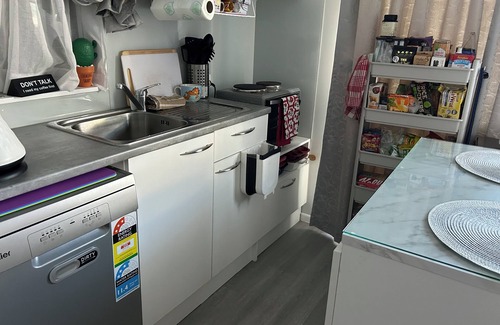 please note- this is only a small tiny house, small lounge, and small kitchenette with mini fridge and small freezer but has a dishwasher as i can not survive without one!
