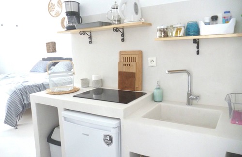 the studio is made up of a room with a sleeping area: 1 very large double bed (king size: 200x200)