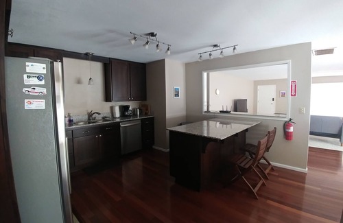 deer meadow ranch is a ranch style single story house with open-air wrap around porch The house has two spacious bedrooms which can accommodate up to eight people. One bedroom has california king size bed and a foldable double size sofa bed and newly updated walking closet. This bedroom comes with a remodeled master bath with soaking tub, tiled shower, vanity and granite counter. The second bedroom has two queen size beds. It also have a small pottery barn style desk where you can use for work or nightstand. The second bathroom is conveniently located next to the second bedroom. It has shower, and granite vanity counter. There is also a foldable double sized sofa bed in the livingroom. The house has cozy brazillian redwood floor mixed with ivory colored carpet. Spacious living room with large windows, so you won't miss the surrounded tree and mountain scenery. The kitchen is recently remodeled with granite counter tops, stainless steel appliances. The spacious wrap around deck can let people to sit down outside and relax .