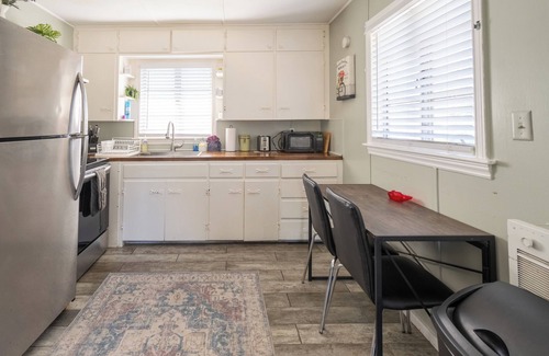 This delightful 2nd-floor apartment is located on a quiet residential street and is only 7 miles from the beach! Shopping and dining options are less than a mile away. The apartment has been remodeled and hosts a sofabed in the living room, and a queen-size in the bedroom. This is perfect for a beach vacation and includes complimentary WiFi as well as all of your basic kitchen needs. a dedicated parking spot is included!