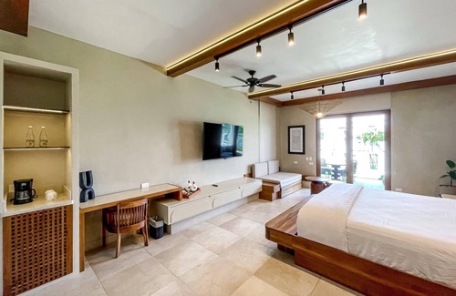 Enter a world of contemporary elegance in our Deluxe Room, where modern sophistication harmonizes with island charm.Thoughtfully crafted for comfort, this stylish retreat features a sumptuous king-sized bed, sophisticated decor, and expansive interiors that seamlessly blend comfort with relaxation. Floor-to-ceiling windows invite in natural light, offering stunning views of lush tropical gardens and immersing you in the serene ambiance of Las Verandas Hotel & Villas.
