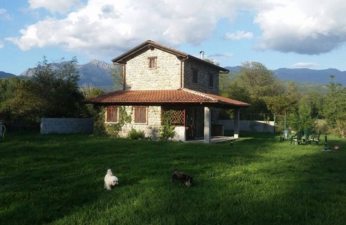 La Casetta is an ancient 13th century farmhouse. renovated in 2014; immersed in the green of Lunigiana, within an area intended for a very quiet river park, far from traffic. Organized on two levels, on the ground floor Kitchen equipped with induction hob - fan oven - microwave oven and fridge with freezer, living room with TV and wood-burning fireplace - sofa bed and dining table, closet and a bathroom with shower and washing machine: first floor with double bedroom (French bed) - wardrobe, bedroom with bunk bed and wardrobe, bathroom. External veranda with table, barbeque and 1600sqm of enclosed garden with private parking spaces.