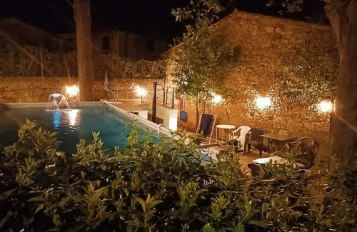 access to the property via a steep, narrow alley Guests can temporarily stop their car in the square to unload their baggage. The swimming pool is shaded by two beautiful ancient trees, and therefore requires cleaning twice a day (each cleaning takes 2 hours). The times of the pool cleaning can be agreed with the owners.