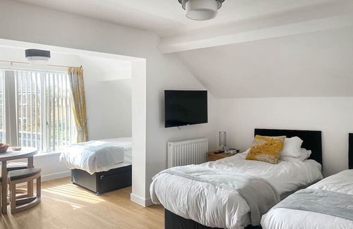 bedroom area: with double bed, single bed and smart tv