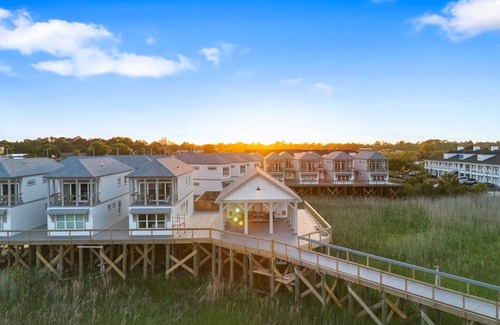 details: winyah bay club features 17 stylish, individual cottage units, each ideal for large wedding parties, golf enthusiasts, and families This cottage offers two spacious bedrooms, two and a half baths, and a master suite with breathtaking water views. The open-plan living room, kitchen, and dining area on the second floor are designed to maximize the stunning waterfront vistas, making every stay memorable and luxurious.