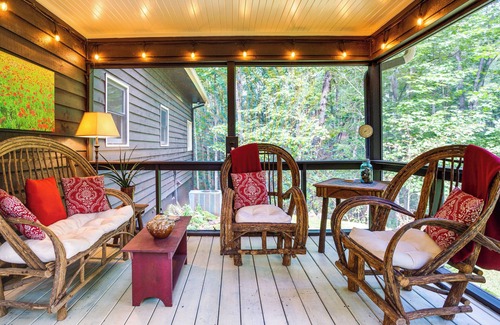 Surrounded by towering trees and boasting an idyllic outdoor entertainment space, the 3-bed, 2.5-bath ‘Laramore House’ will immerse you in an unforgettable setting of tranquility and peace. Featuring a comfortable open living area, a cozy screened-in porch, and a beautiful back patio with a fire pit, this Dahlonega vacation rental invites you to unwind inside and out. when you're ready for adventure, enjoy exploring the surrounding vineyards, hiking trails, and family-friendly attractions!