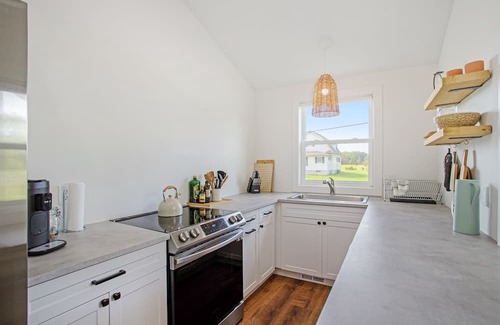 when all you want to do is relax, nestle down under the living room's high ceilings amidst soft seating and a large smart tv When you aren't hanging out here, the sunroom offers a pleasant spot to dine, visit, or simply flip through your vacation read. The home's well-equipped kitchen hosts a full suite of stainless steel appliances and ample meal prep space.