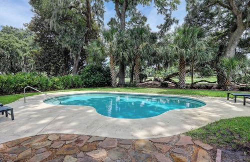 Wonderful luxury Sea Pines four bedroom home with private pool and spectacular views of the live oaks wrapping around the golf views. Gorgeous high ceilings with huge kitchen and lots of living space outdoors. Oversize kitchen and dining area overlook the pool and golf course. Kitchen is fully stocked so you can prepare all the meals for the family. Living room has very large screen TV to relax and enjoy your favorite movies or sporting events. The home surrounds the private pool area so you have a tremendous feeling of privacy while being in Sea Pines. Your vacation rental includes bike rentals and beach gear with your stay. 6 Planters Wood in Sea Pines is professionally managed and operated by Hilton Head Vacations, Inc, a locally owned company.