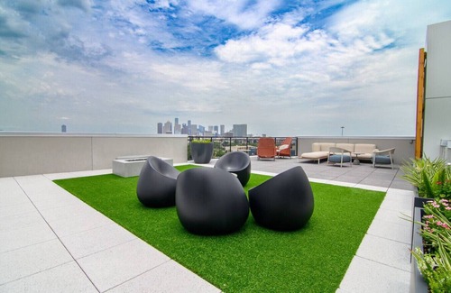 🌃 sky-rooftop deck w/ shared grill + firepit: swing in sunset shades