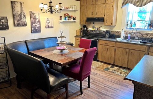 Cozy, private historic home located downtown. Separate space with a salon in the back with Private entrance. House dates back to 1890 and located within walking distance to lakes, biking walking trails, local shops, restaurants and all the excitement downtown. Conveniently located near the hospital. Close to many lakes, golf courses and a short drive to Hunter Springs, diving, kayaking, scalloping and west coast beaches. Lock box code provided for hassle free entry. Beautiful setup in a really great downtown space. Shampoo/soap, fresh linens and towels and a well-equipped kitchen as well as patio seating with garden lights and tiki torches. Feel free to help yourself to coffee, tea, espresso and any snacks available. We try to cover all the special touches to make for a nice, comfortable stay. Plenty of space for bikes, boats and trailers. This is a short term vacation rental with all utilities included. Deck/patio seating with hot tub..