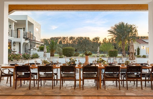Gorgeous Desert Modern Villa with all amenities, sleeps 28 comfortably, with 13-all en-suite bedrooms and a 3400sqft climate-controlled barn with a full size movie theater. new pickle ball and basketball!