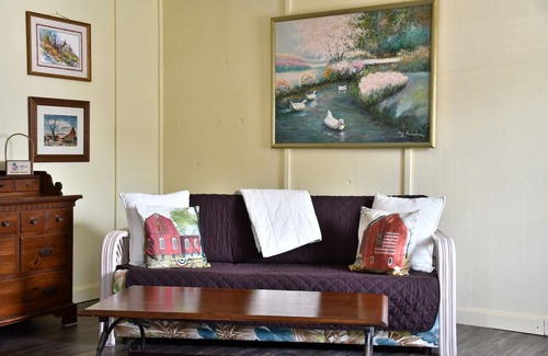 our farm is located in one of the few hilly areas of florida, with the trilby trails just minutes away Duck Haven is a private pet friendly studio apartment whose closest neighbors are a well behaved flock of crittically endangered sheep. It features a queen size bed, and a queen size sleeper sofa that can accommodate up to 4 guests. We have provided all the things that you might need to make your stay enjoyable and relaxing. We have a convection oven, microwave over, hot plate, coffee maker, and a full size refrigerator inside the apartment for all your cooking needs. *Please note that we do not have a kitchen sink. Dishes will need to be washed in the bathroom.*