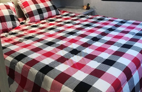 our camper is brand new in 2023 and comes fully stocked with pots/pans, silverware, dishes, cooking utensils, toaster, 5 cup coffee maker with filters, towels, bedding, and hair dryer in the bathroom Free Wifi on the property. TV in the camper comes with free local channels. Queen bed in the bedroom.