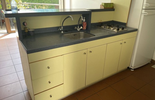ground floor: equipped kitchenette, laundry area, living room with tv, guest bathroom, a nice balcony
