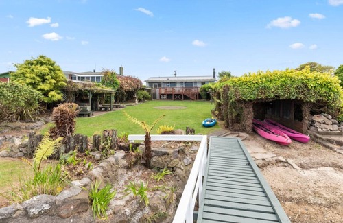 enjoy lake views from almost every room and alfresco dining on the expansive deck Kids will love the big back yard which leads straight to the lake! You have your own private jetty complete with kayaks for lake explorations. there's a scenic walking trail nearby as well as the waititi stream - one of the best trout fishing spots in the world!