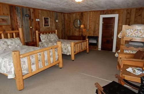 You’ll enjoy spacious room with two queen log beds and a set of bunk beds, a comfortable indoor sitting area and plenty of room to spread out. Soak up the morning sunshine through the large windows and enjoy lake views from your private deck as you are serenaded by the whispering wind and the local birds.