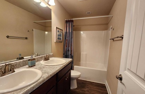 this home has all the basics in the kitchen, living room, and electric fireplace with a smart tv The main bedroom has a king-size bed with a private bathroom; the second has a queen-size bed and a desk. The other two rooms have a twin-size bed. The house is in a great location where you can be within ten minutes from the beach and casinos and five from the Promenade Mall. The house has a perfect combination between nature and city life..