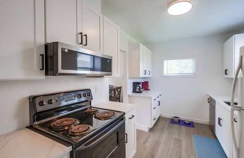 spacious and pet-friendly, perfect for bringing your pup along, even equipped with a doggy door leading back to the back yard