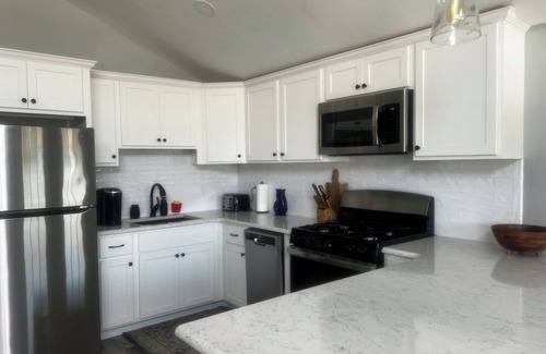 Just a short walk to the a family friendly beach. Play all day at the beach to enjoy beautiful sunset on the deck. A lovely back patio to grill and chill with family and friends. Plenty of parking for four cars..