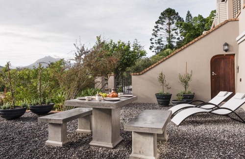 step into your own little private garden and braai area, ideal for sunbathing, reading, or simply unwinding together Enjoy the beauty of our planted proteas, and when in season, help yourself to fresh lemons from your small tree. Surrounded by vineyards and backed by stunning mountains, the ambience and serenity of Stellenbosch envelop you, with the pool just a short stroll away for an early morning or late afternoon dip.