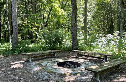 return to the great room and open the sliding glass doors to the large deck where you are greeted by a scene reminiscent of overnight camp including a fire pit surrounded by three wooden benches and a picnic table A new gas grill provides this scene with the one touch of convenience that makes dinner preparation easy. Conclude your evening roasting marshmallows, enjoying s’mores and sharing stories around a good old fashioned campfire.