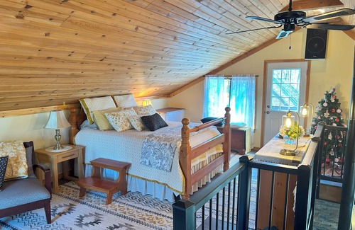 Situated in the middle of 10 acres, this salt box cabin with loft bedroom, allows you to “get away from it all” without “ roughing it”. On a calm day it is not unusual to wake up to absolute quiet on the deck. Just hang out and enjoy Mother Nature or take a short trek to the stream at the bottom of the property. Relax and recharge.