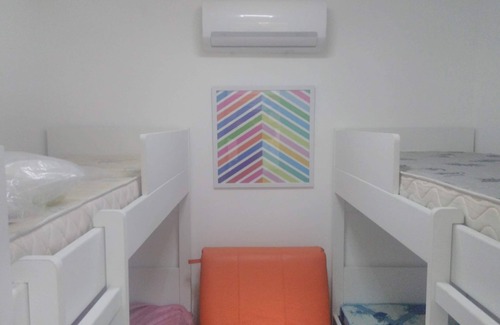 Excellent Flat with 2 Rooms, 1 with a double bed and 1 with two bunk beds, balcony, TV in the double room and living room, Split Air in the rooms, Internet, all the necessary utensils for a good stay. The Condominium has a great infrastructure with swimming pools for adults and children, swimming pool with rays, tennis courts, football, basketball, as well as a leisure area with toys for children. All of this in Gravatá..