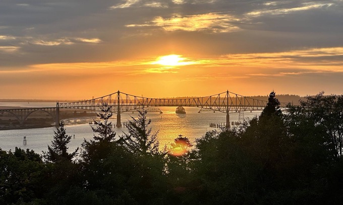 This beautiful space is perched on the shores of Coos Bay. It boasts expansive views of the bay, Pacific Ocean, the city lights of North Bend and historic McCullough Bridge. The unit is fresh, modern and beautifully appointed and located minutes from the Oregon Dunes and ocean beaches. Also, home of Bridgeview Coffee Roasters. Enjoy complimentary freshly roasted coffee to brew in your lovely space..