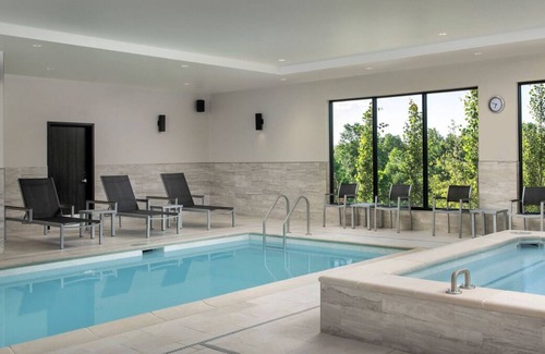 - indoor swimming pool with loungers, umbrellas, and towels;