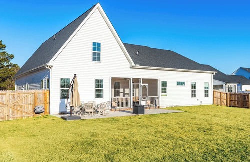 Your own private retreat! This 2023 custom-built retreat features a pet-friendly fully fenced 1-acre backyard with volleyball, cornhole, horseshoes, sandbox, propane firepit, patio seating, propane grill, & screened-in porch. Inside: 5BR, 3BA, sleeps 10+, with Smart TVs in almost every bedroom, a King bed in the en suite Primary, a spacious living room with 65"+ TV, and a private office. Parking for 4+ cars. Just 10 min to groceries, 15 min to I-95, 20 min to Downtown Raleigh for a night out.