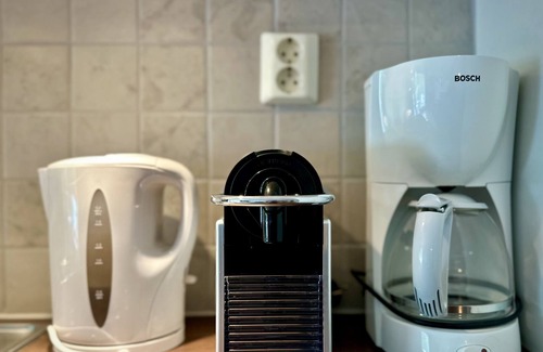 well-equipped kitchen with dishwasher and espresso machine