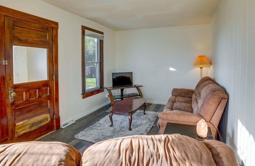 Enjoy the fresh air and the peace and quiet in this beautiful farmhouse that is filled w/ love & adventure. Nestled on 3 acres of grassland and trees and on a paved road yet still w/in a short walking distance to town. Plenty of on site (free) parking including garage space! Prefer to not have to deal with the neighbors - perfect! You've got fields on all sides of the homestead but you can still see town 1/2 mile away. Plenty of room to spread out yet the home feels cozy & warm. Pet friendly with on site laundry! Outdoor gardens, sitting areas & fire ring. there's a full kitchen, a soaker tub, a basement shower, comfy beds & linen are provided! easy access to several larger towns for all of your business or shopping needs!