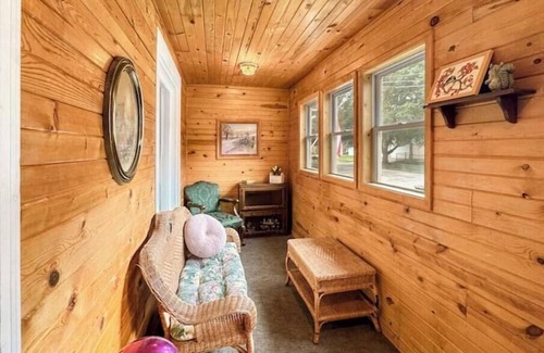 this home is a four bedroom, two bath two-story home with finish basement Home features a cedar-lined all weather porch, hundred year-old hardwood floors, kitchen with Jen air, convection, super fast wifi, oven, dishwasher, a separated, dining area with extendable table, and a desk. Living room features plush reclining furniture. this home is perfect for hosting working groups or families!