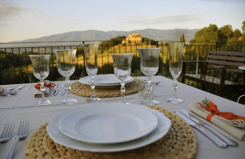 girasole is one of 5 beautiful apartments in our farmhouse set on 14 acres of olive grove, each with private shaded verandas perfect for dining "al fresco"(total property sleeps 16+4) boasts a large infinity pool with its lovely gardens ,positioned so that the wonderful view can be enjoyed in the sunshine from early morning to sunset also a large communal panoramic terrace Superb private position above the medieval town of Figline Valdarno,.