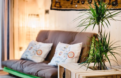 larch scent - and the forest view pampers your mood Now you can finally let go of your thoughts. And being there together. Embedded in natural quality. The interior design in NONO2 is a fine experiment: upcycling furniture meets African art accents. your four-legged companion is also welcome in nono2!