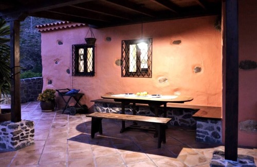 the accommodation is in two buildings, which are right next to each other Both are built in traditional style. The main house consists of a large living room with a fully equipped kitchen, dining area and a rest area with an optional double bed and a master bedroom with a bathroom. The master bedroom has a comfortable double bed and a single bed. In front of the main house is a spacious terrace with a canary porch and a summer kitchen. From the terrace you have an amazing view into the whole valley.