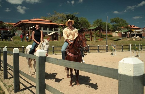 the structure of hotel monte castelo farm offers swimming pools, restaurant, sports courts (tennis, volleyball, soccer), programming for children, farm and park