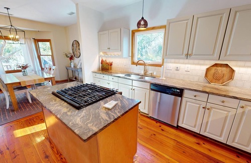 One of Folly's Best! Hideaway in your own wooded sanctuary tucked 3 blocks away from the heart of Folly! The West Indie Inn is perfect for bigger family or friend reunions as it can accommodate up to 10 guests. When you walk in you are instantly welcomed by the open layout and natural light flooding in through the windows. as an added bonus the lights you turn on with a switch are all solar powered!! this green home is a show-stopper!