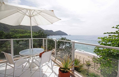 Duplex penthouse in the only development of this size on this beach, breathtaking panoramic view, prime location, surrounded by mountains and facing the sea, airy with refreshing sea breeze 24 hours a day, the property being a duplex is divided as follows: lower dining room with open concept kitchen, 3 person suite and another 3 person room with attached social bathroom, to access the upper floor, a spiral staircase is used, where is the living room TV with double sofa bed, a nice and large balcony with panoramic sea view and another suite with double bed, all rooms have ceiling fans, full kitchen with all appliances and utensils, in the common area of the building, games room with ping pong, billiards and geek tables, swimming pool facing the red beach, considered one of the cleanest in Ubatuba, and very well attended, barbecue, dry sauna and vap or and showers, a huge grassy garden facing the beach, private 2-car covered garage plus a parking space for an unmarked third vehicle. Only families of these 8 existing apartments can enjoy this unique and privileged development founded in this one of the noblest regions of Ubatuba..