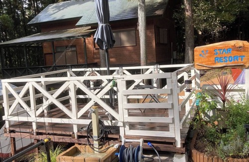 you can stay overnight with your family friends or even with your dog / a log house where you can stay with your dog located in a very quiet environment in a national forest park