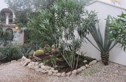 a house for the large family, or vacation with friends, as there is a separate studio with kitchen, bathroom and three terraces in the basement of the house Our house is located in Costa de la calma, an idyllic place on the southwest coast, 15 minutes by car from Palma. There are beautiful bays 300 m away. The main beach of Santa Ponsa is 1 km away. The leisure offer is diverse. Surfing, golf, tennis (free) etc. "Casa alegre" is waiting for you in a green area (Zona verde), in the middle of a beautiful garden with 150 m "terrace area". Of particular note is the 70 m2 roof terrace, which is equipped with sun loungers, a lounge corner, table, chairs and a 4m parasol. But also the large balcony and the terraces in front of the house invite you to linger. A summer outdoor shower provides refreshment on hot days. The apartment has 55 m "and was extensively renovated in October 2015. It is very fully equipped. It has a bedroom, living room with two beds, kitchen and bathroom, and another four beds in the basement. An electric heater ensures your well-being on cool days. Stereo system, 200 CDs and satellite TV available. Of course, WiFi is also available.