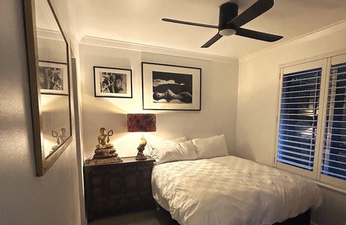 features include a back courtyard with calming fish pond and water feature, double bed, tv snug, marble dining table and of course chef's kitchen with double fridge/freezer, gas hob and oven, dishwasher and walk in pantry There's a shower room and separate toilet and bedding, linen and towels are provided. You'll have access to the compound vege patch and to the small car port during your stay.
