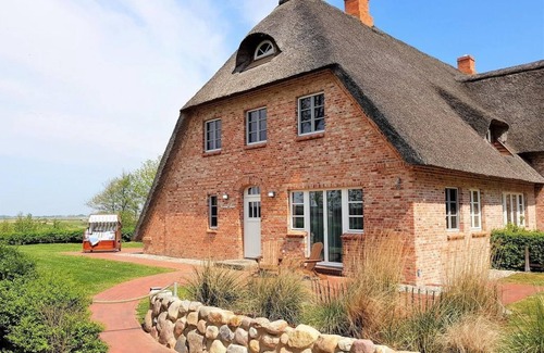 exclusive terraced house under thatch in a quiet, yet convenient location with stunning, unique panoramic views over marsh and natural pasture EC fl. with sitting area (sofa bed), flat screen TV, / Blue-RAY DVD, workstation, mini hi-fi system / USB. Fully equipped kitchen: induction cooker, microwave, fridge / freezer, washer / dryer. Functional shower room / WC with walk-in shower at ground level. Store room. First floor: 1 bed. with double bed, space for cot. 1 bed. with 2 single beds. Both bedrooms. with flat screen TV and blackout curtains. Spacious shower room / WC with walk-in shower, towel warmer. Comfort details: Underfloor heating, insect screens in all rooms. Storage for bicycles available. Own car parking space with direct access z. House property. 2 sunny terraces with a view. Big beach chair. Ironing board, iron, safe, high chair, games, hair dryer. The barbecue is not allowed. The 5. Person and the pet will be charged with 5,00 Euro per day..