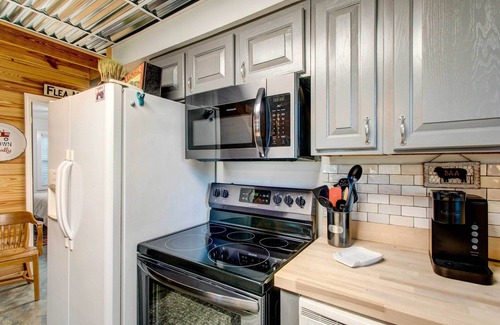 with outdoor activities at every turn, this 3-bedroom, 2-bath wray cabin is ideal for a peaceful getaway with loved ones! spend your days swimming in the lake, exploring the walking trails, and greeting the farm animals on the property After fun-filled days, settle in for a game night in the living room or spend a starlit evening telling stories by the fire pit.