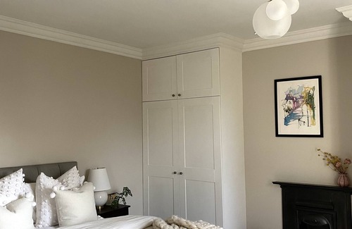 Georgian Farmhouse built in 1830's set in 2 acres of English countryside, rural views but only 7' from the station to London (direct train is 55'). Fully renovated to a luxury standard inside, farmhouse kitchen complete with 5 oven AGA, Belfast sinks and a mud room! Large rooms with high ceilings, this house has many period features, celling roses, cornice, wall panelling giving it character and a cosy feel. The garden is full of roses and mature trees. There is a kitchen garden, fire pit and plenty of parking..