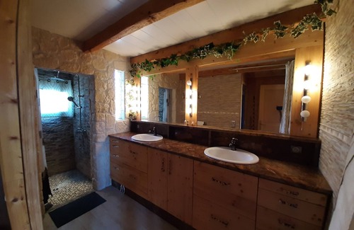 In a wild setting to live to the rhythm of nature, chalet furnished with luxury and comfort, can accommodate up to 6 people, at the edge of a private and enclosed pond. With its large terrace over the water, you will appreciate the proximity of the pond, with an incredible view closer to nature! Cozy and chic decor: wood, marble, and large windows, the rooms are bright. Two terraces equipped with hammock, garden furniture, deckchairs for a relaxing stay. A boat and vests are at your disposal, and you can access a private part of the pond for sport fishing or relaxation. The region also offers a multitude of activities. Water skiing within 1km, nautical base 3km and Walibi Rhone-Alpes Park 3km..
