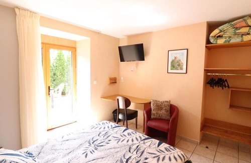 fully furnished gîte on the ground floor: living room with flat screen tv, wifi internet access, fully equipped kitchen area, one bedroom with 2 single beds and private bathroom with toilet, one bedroom with 1 160x200 bed, bathroom private water and separate toilet, possibility of single bed for child in sleeping area with bunk beds, flat screen tv in each bedroom Beds made on arrival and linens provided. Gas central heating included in the price. Heating prices included.