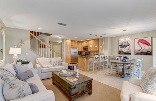 Coastal charm and elegance await at 405 Sailmaker! This 3 bedroom, 3 bath townhome is updated and the perfect place for your next island vacation. the cool and calming color palette used throughout sets the tone for a relaxing stay at this summer beach slice of paradise!