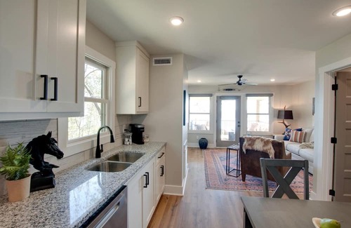 step into the spacious den, where large windows frame stunning lake views that evoke the open skies and wild landscapes of the american west Relax on the queen-sized pullout sofa or prepare hearty meals in the fully equipped kitchen, complete with modern appliances and a Keurig coffee station.