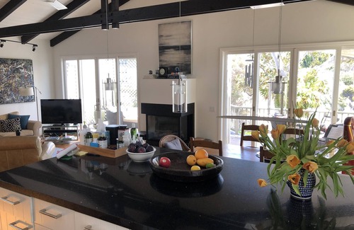 This beautiful single-family home located in San Diego's prized historic district of Mission Hills is available to rent Nov 4 through Jan 5, plus much of April and May 2026. Please check Calendar for current availability. Located at the Heart of Old San Diego - this bright and airy customized home offers style and privacy for a family of 3 - 4 or perhaps two adult couples traveling together! A well-behaved pet is also welcome. The dramatic Open Floorplan boasts vaulted beamed ceilings, a switch-activated gas fireplace, comfortable Pottery Barn and Italian leather furnishings. and gleaming hardwood floors. The open Kitchen is stocked with high-end appliances and cooking tools for the chef-enthusiast. There are 2 bedrooms, separated by private hallways, each bedroom with a high quality King bed and accompanying bathroom with walk-in tiled showers. Enjoy climate-controlled mini-split air-conditioning or thermostatically controlled heating by room, plus the cozy warmth of the Living Room's gas fireplace. Out front - relax under the pergola adjacent the stone driveway which provides one on-site parking space. At the east side of the house - slide glass doors open to enjoy a very private deck terrace - an ideal spot for morning coffee or an evening glass of wine. Here one can relax and unwind under the stars - enjoying views of the city and nearby canyons. This property's central location is ideal for exploring both Uptown and bustling Downtown San Diego, 1200 acre Balboa Park, and its amazing Zoo. Historic Old Town is 5 minutes down the Washington Street hill. For those who love to walk - stroll a few blocks to upscale food markets, cheese and gelato shops, pizzerias, and specialty restaurants. Picturesque historic homes line the streets of Old Mission Hills while there are dozens of diverse eateries including the city's best bakery + coffee, just 6 blocks west in Hillcrest. If renting a car - this property is 3 minutes from Interstate 5 with spectacular Coronado Island only 10 minutes south, or popular La Jolla 20 minutes to the north. Most conveniently, one can get to San Diego International Airport in less than 10 minutes. The European owners divide their time between Germany and San Diego and take genuine pride in sharing their wonderful San Diego home while away. Our annual VRBO guests often comment how much they LOVE staying here!.